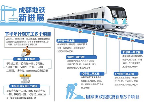 ??地鐵3號線一期7月31日正式開通,其他在建地鐵的建設(shè)步伐也全面加快,今年下半年還計(jì)劃開工多個項(xiàng)目,全年在建里程將達(dá)到376公里。