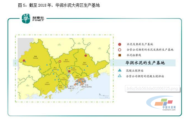 首先,從公司大灣區(qū)業(yè)務(wù)布局上看(圖5),公司作為目前大灣區(qū)熟料市場占有率位列第一的供應(yīng)商,不管從水泥供應(yīng)地理位置及后續(xù)熟料產(chǎn)能調(diào)配上均占有天時(shí)地利的優(yōu)勢。截至2018年底,華潤水泥在大灣區(qū)的水泥及熟料生產(chǎn)基地(包含合營公司)有3個(gè),水泥磨粉生產(chǎn)線1條,混泥土攪拌站(包含合營公司)共計(jì)21個(gè)。